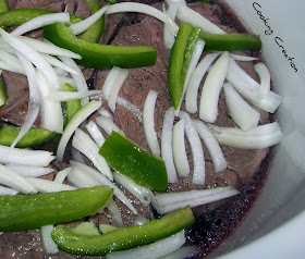 Chuck Eye Steak with Onion & Green Pepper in Red Wine Sauce (Crock Pot)